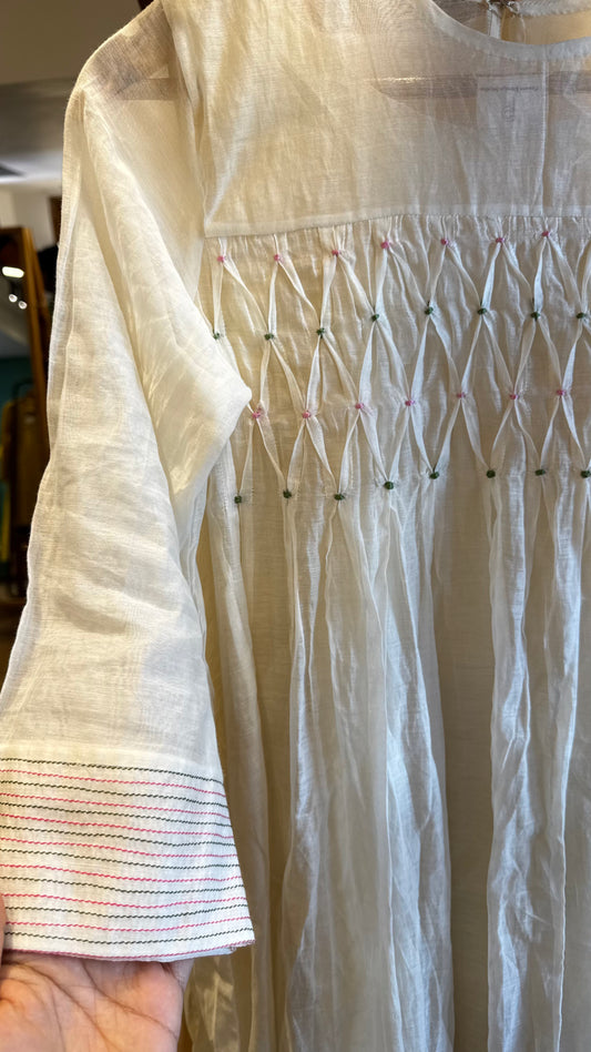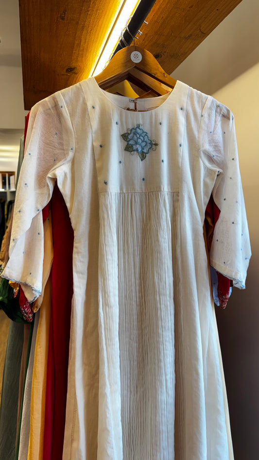 Off white Chanderi dress with round neckline