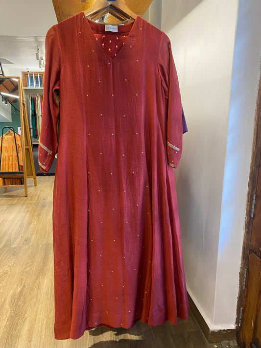 Red Chanderi panelled dress & pants