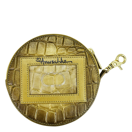 Genuine Leather | Anuschka Coin Purse – Croc-Embossed Leather for Organized Luxury