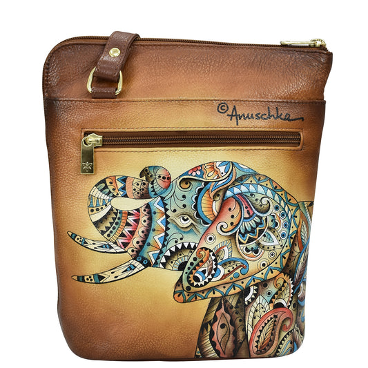 Genuine Leather | Functional Hand-Painted Art with Anuschka Elephant Mandala Crossbody Bag
