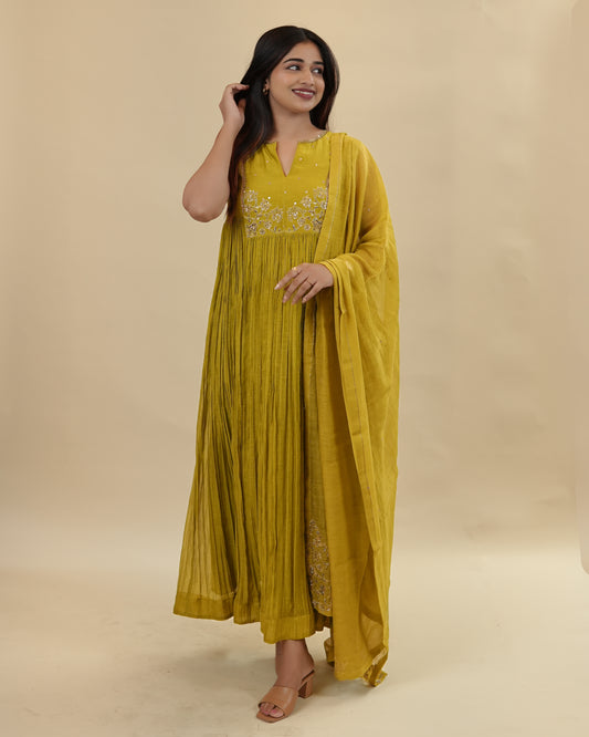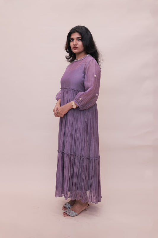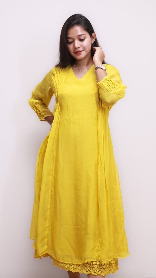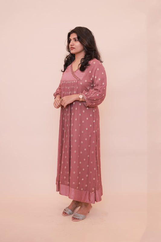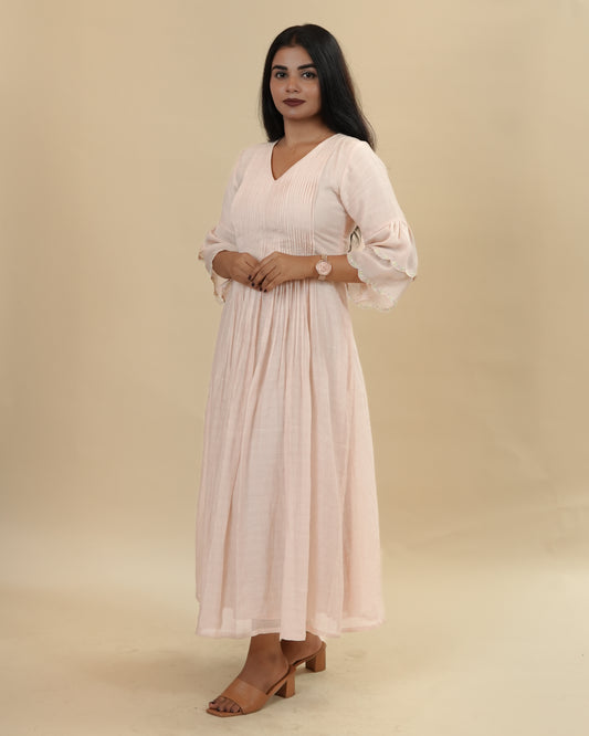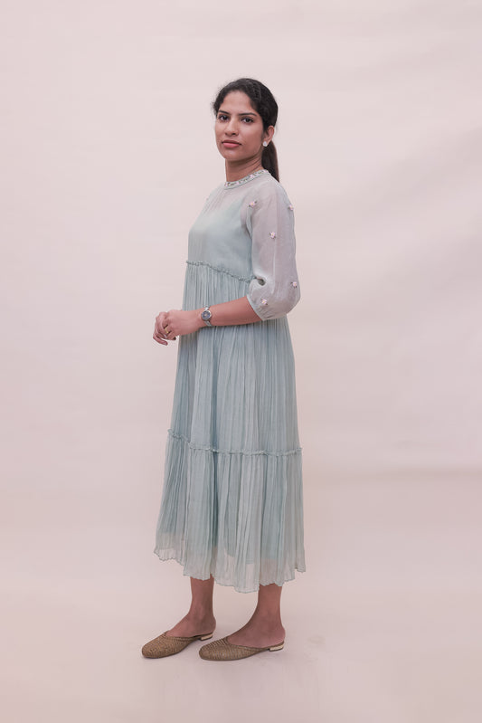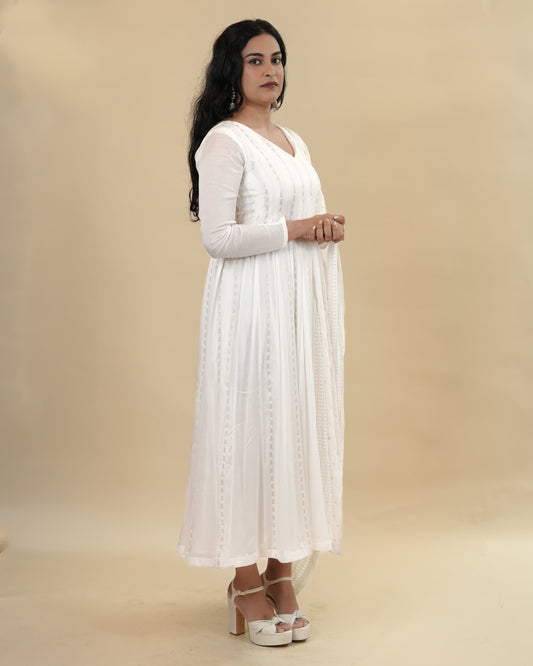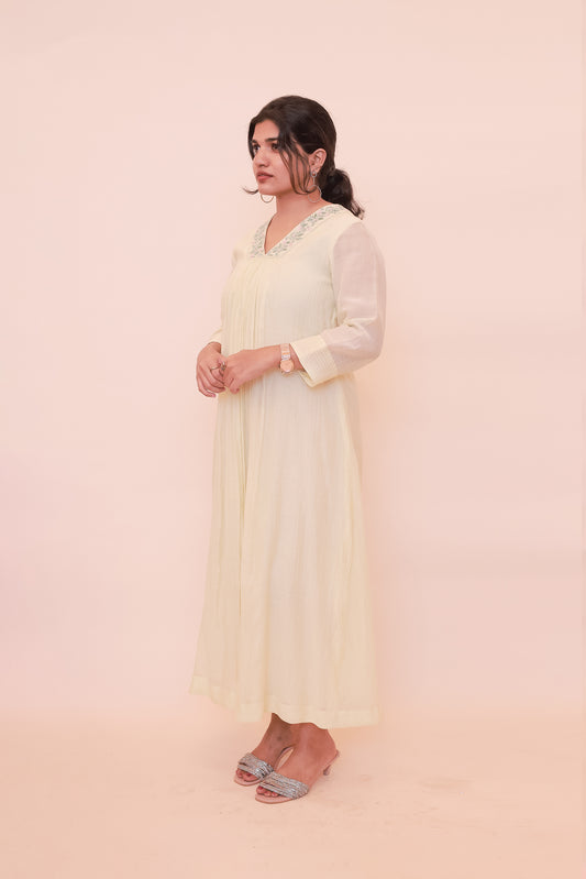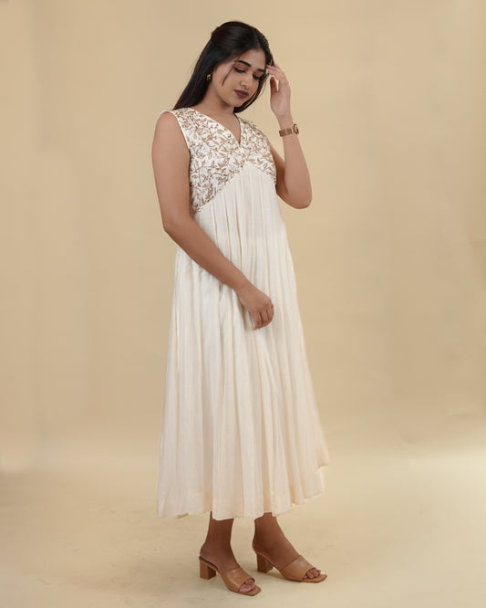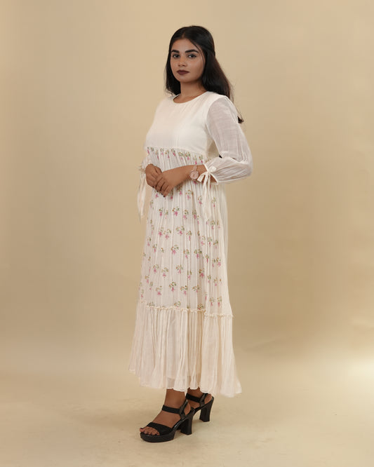 Elegant Off-White Floral chanderi Dress with Sheer Sleeves
