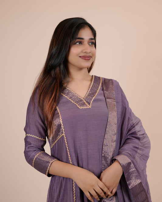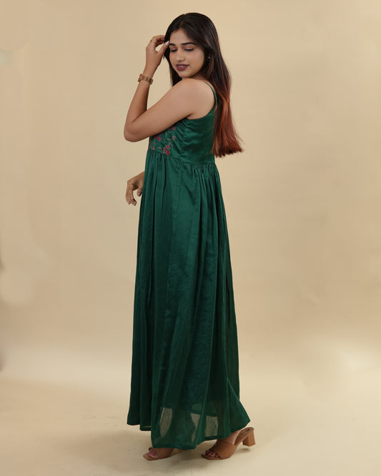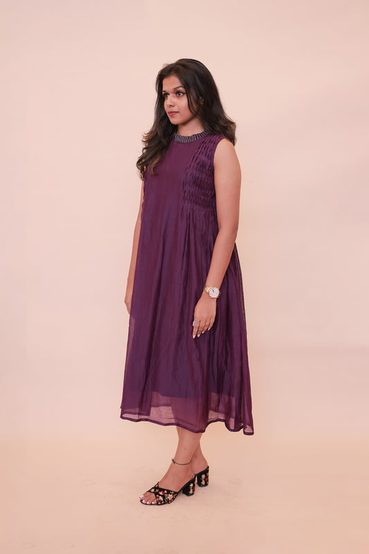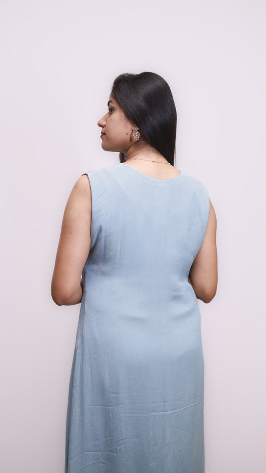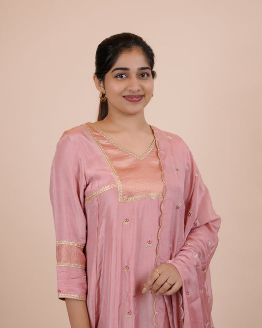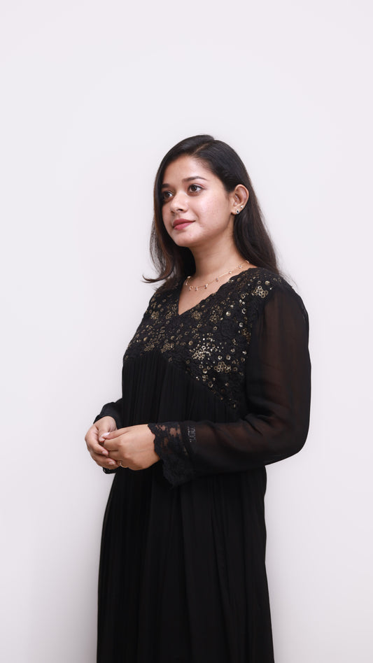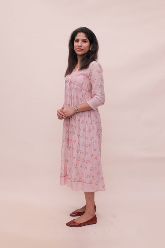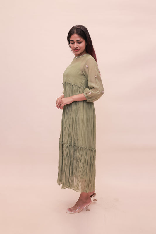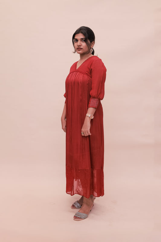 Elegant Off-White Floral chanderi Dress with Sheer Sleeves