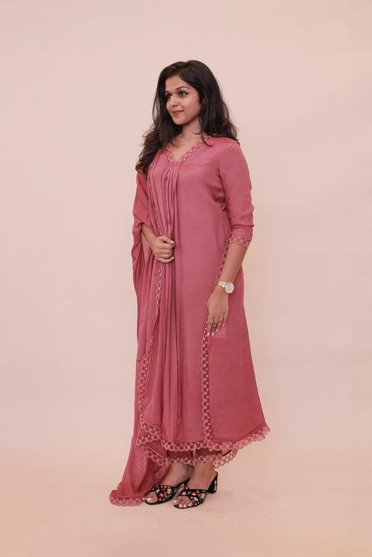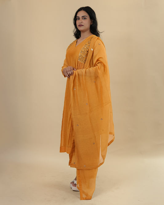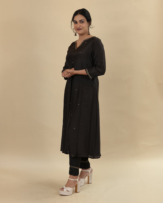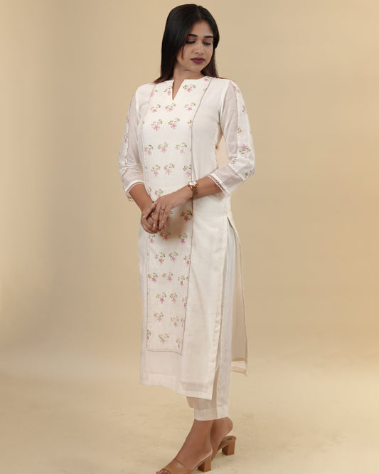 Graceful Off-White Floral Kurta with Sheer Sleeves with pants